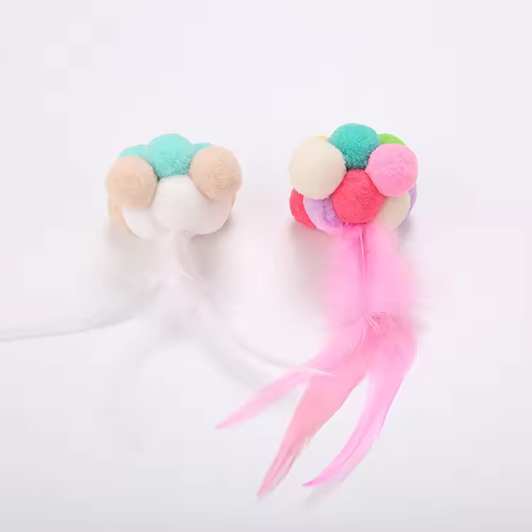 / Cat Colorful Handmade Feather Bell Toy
